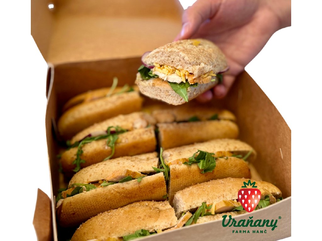 Každá bagetka obsahuje šťavnaté kuřecí maso, koktejlovou omáčku, čerstvý salátek a cibulku.