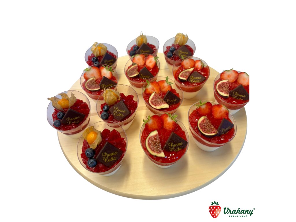 Panna cotta jahodová – Krémový smetanový dezert s vraňanskými jahodami.