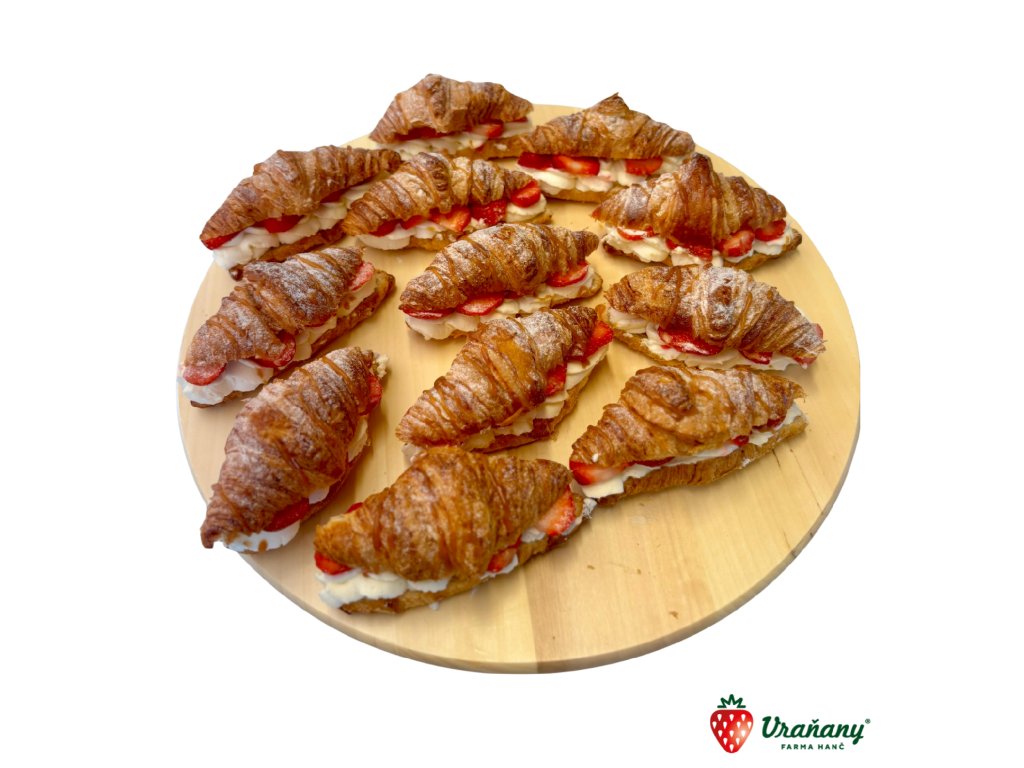 Jahodový croissant – Máslový croissant plněný vanilkovým krémem a jahodami.