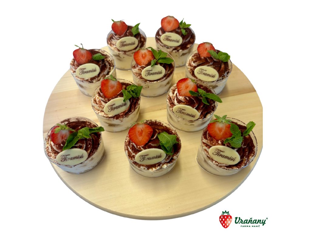 Tiramisu – Tradiční italský dezert s mascarpone, piškoty a kakaem.