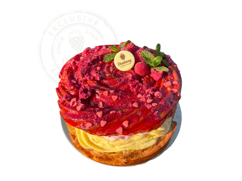 VRAŇANSKÝ VĚTRNÍK dort mini Klasika v moderním pojetí. Odpalované těsto plněné pudinkovým krémem a smetanovým malinovým krémem, polité malinovou glazurou.